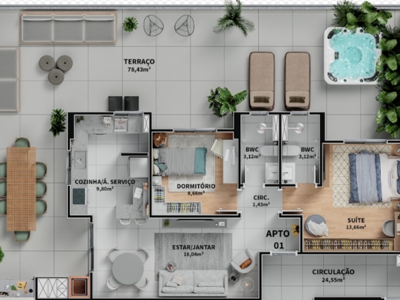 AP Gardens suíte e 1 com 190m²