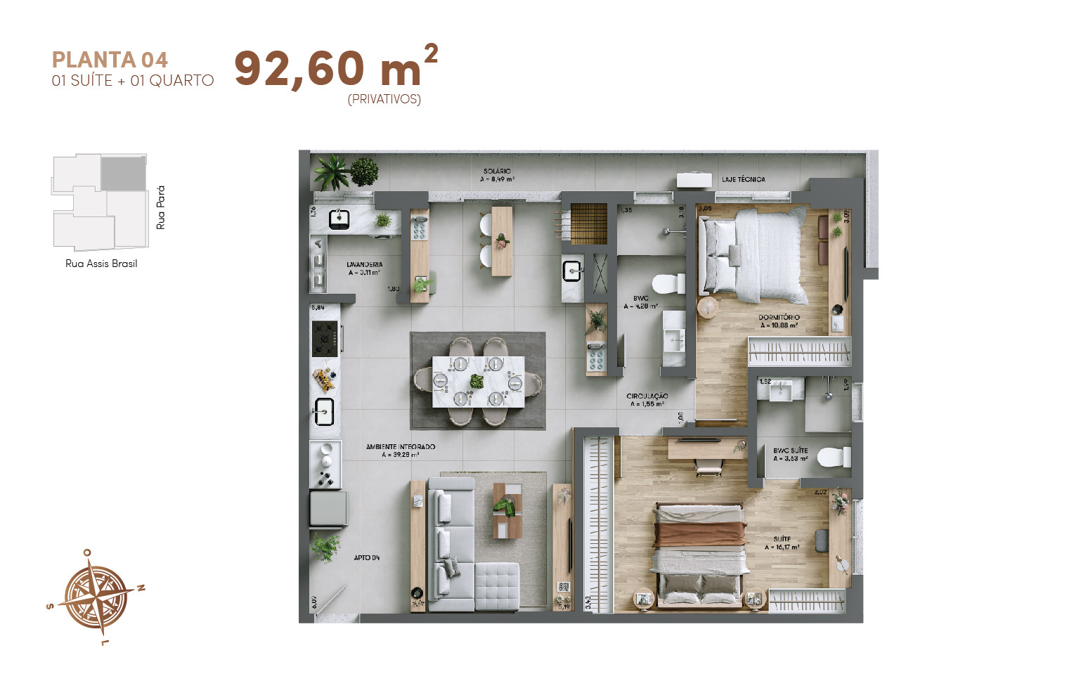 Apartamento Suíte e quarto com 92m quadrados privativos, em andar alto