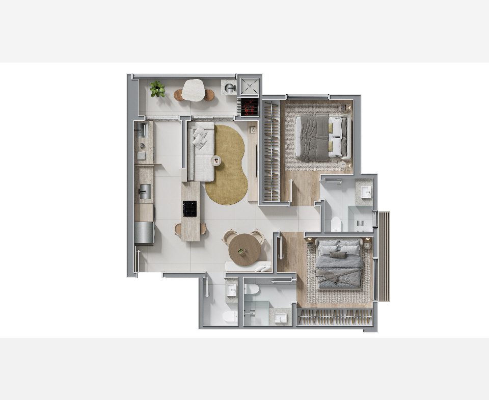 -Duas suítes ou suíte e um quarto com o melhor acabamento.