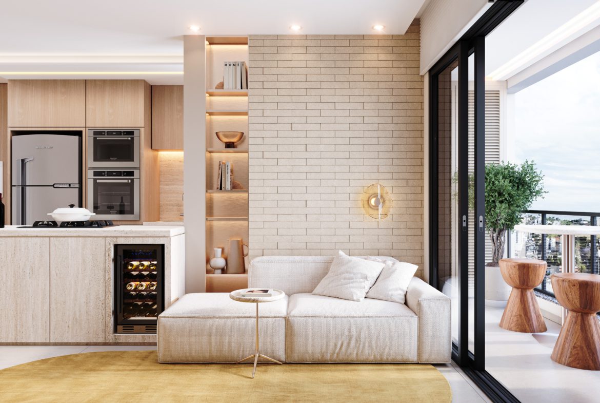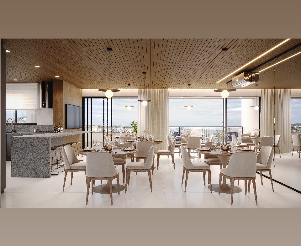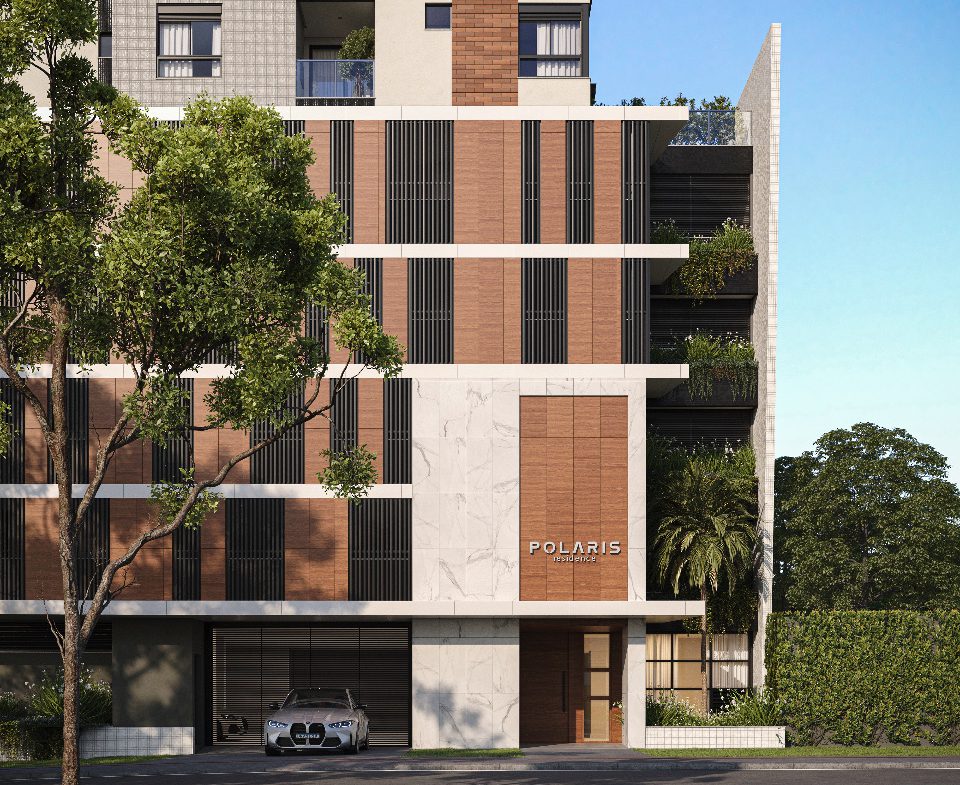 Destaque para luz natural nos apartamentos e vista, edifício de esquina em terreno alto.