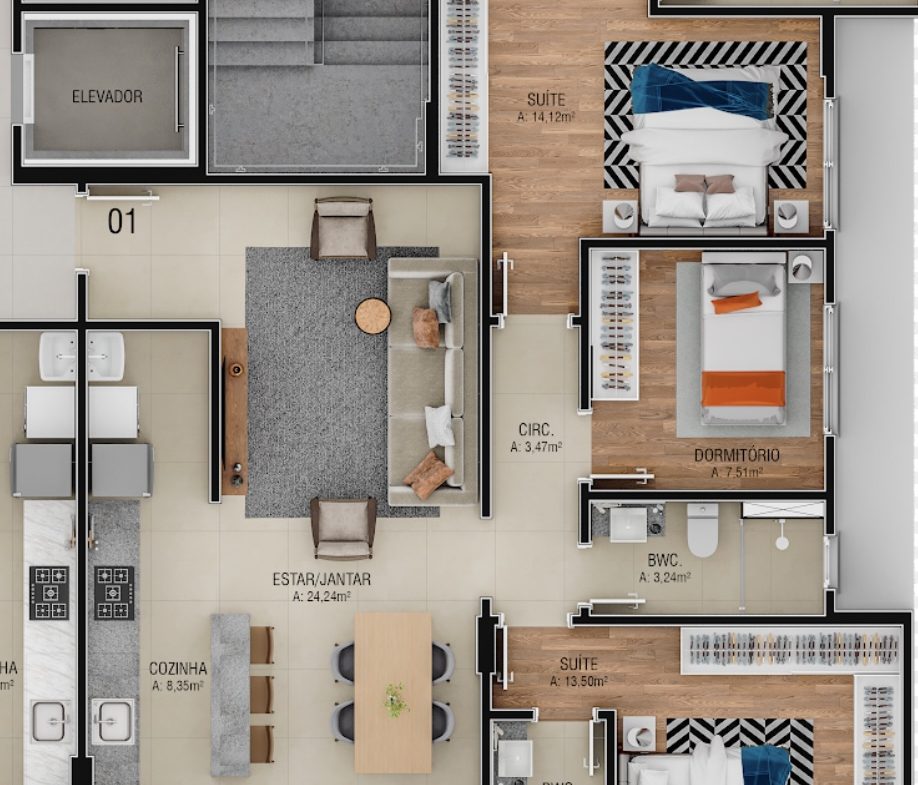 Área Privativa 118 m²