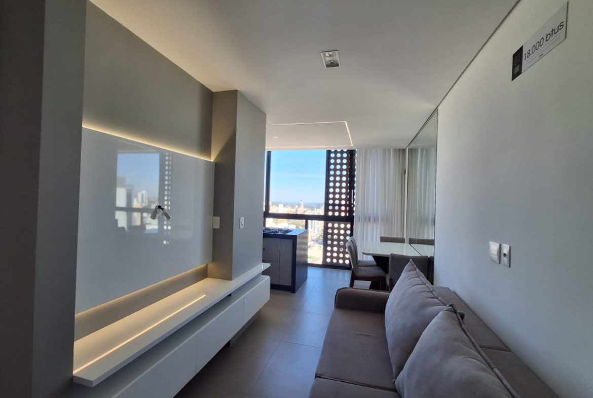Imóvel novo com dois quartos, mobiliado e equipado.