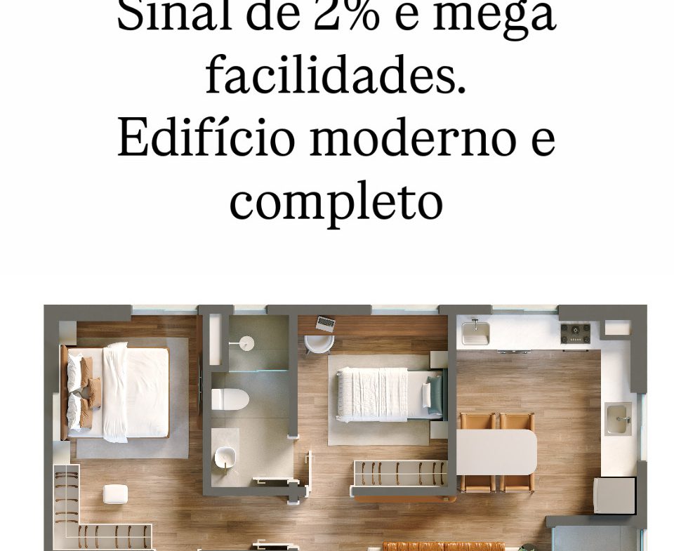 -Arquitetura e tecnologia de última geração com apartamentos inteligentes. Duas suítes.