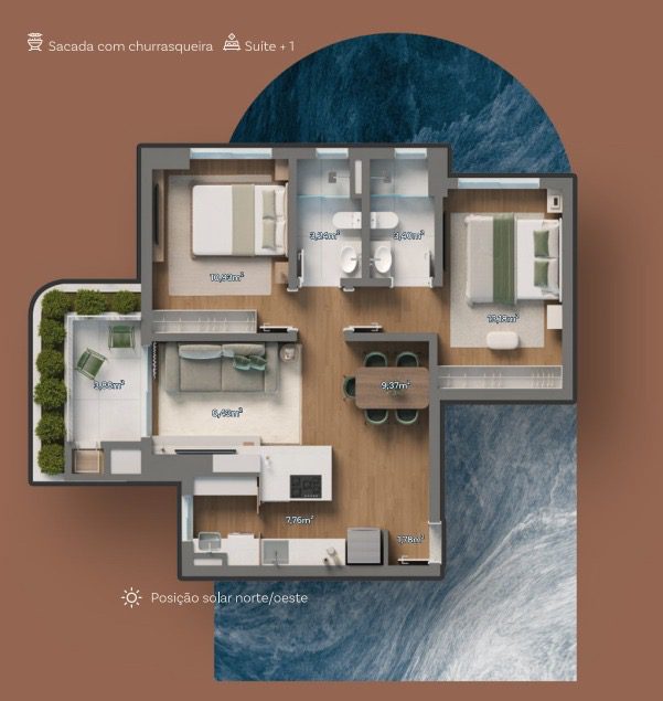 • Área Privativa 77 m²