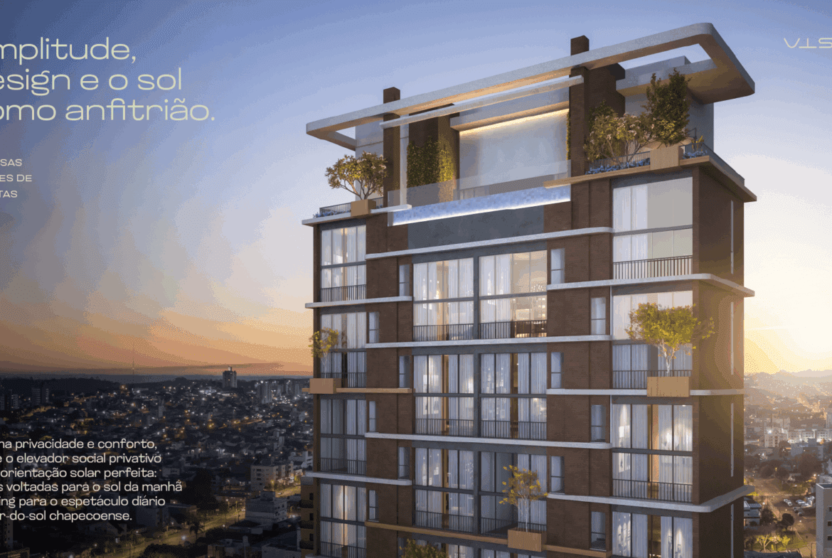 O primeiro empreendimento vertical de Chapecó com pé-direito duplo em todos os apartamentos apresenta um conceito inovador de moradia — moderno, sofisticado e exclusivo.