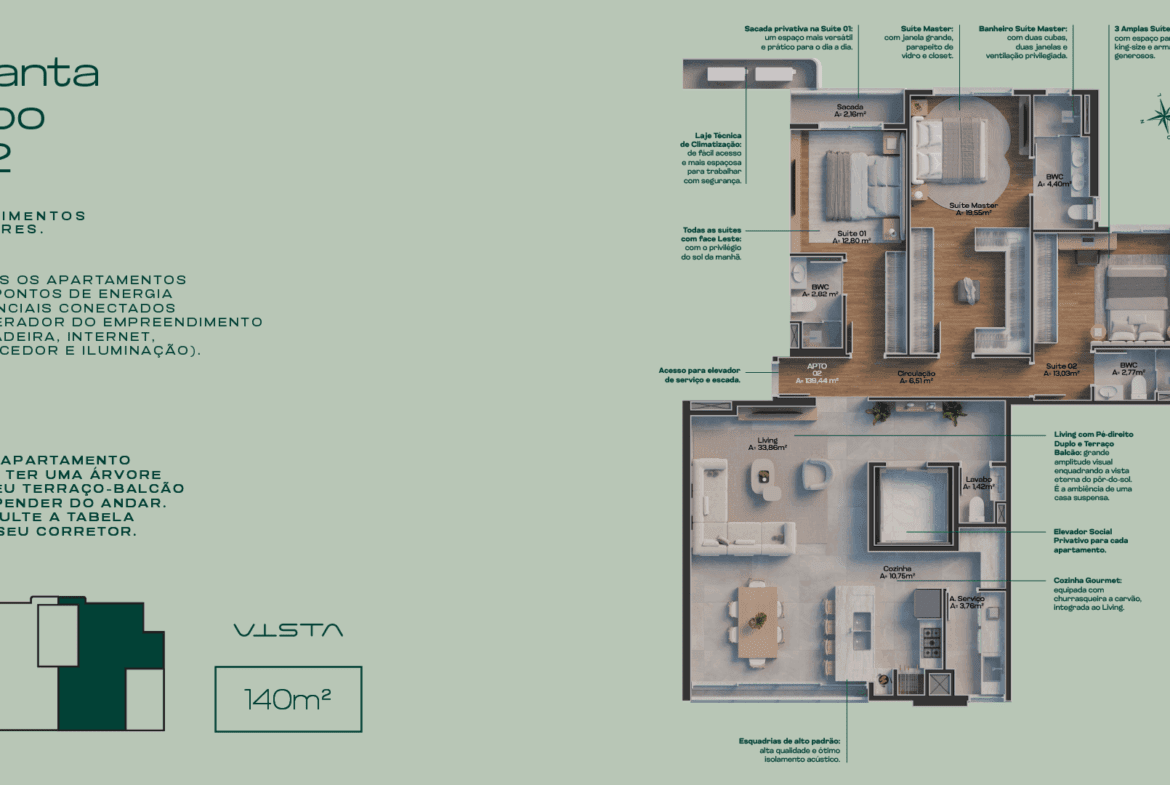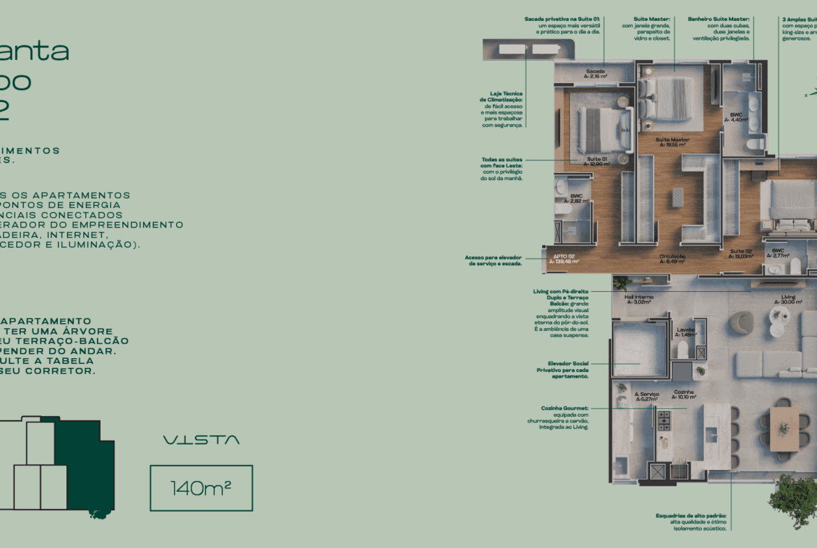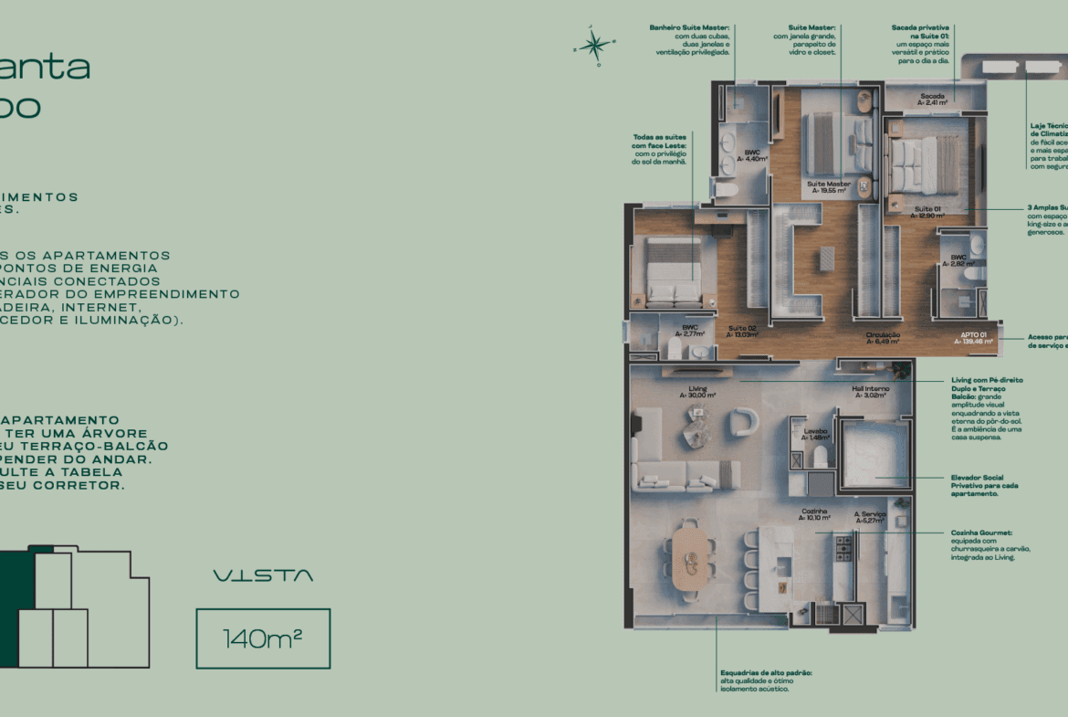 Área Privativa 140 m²