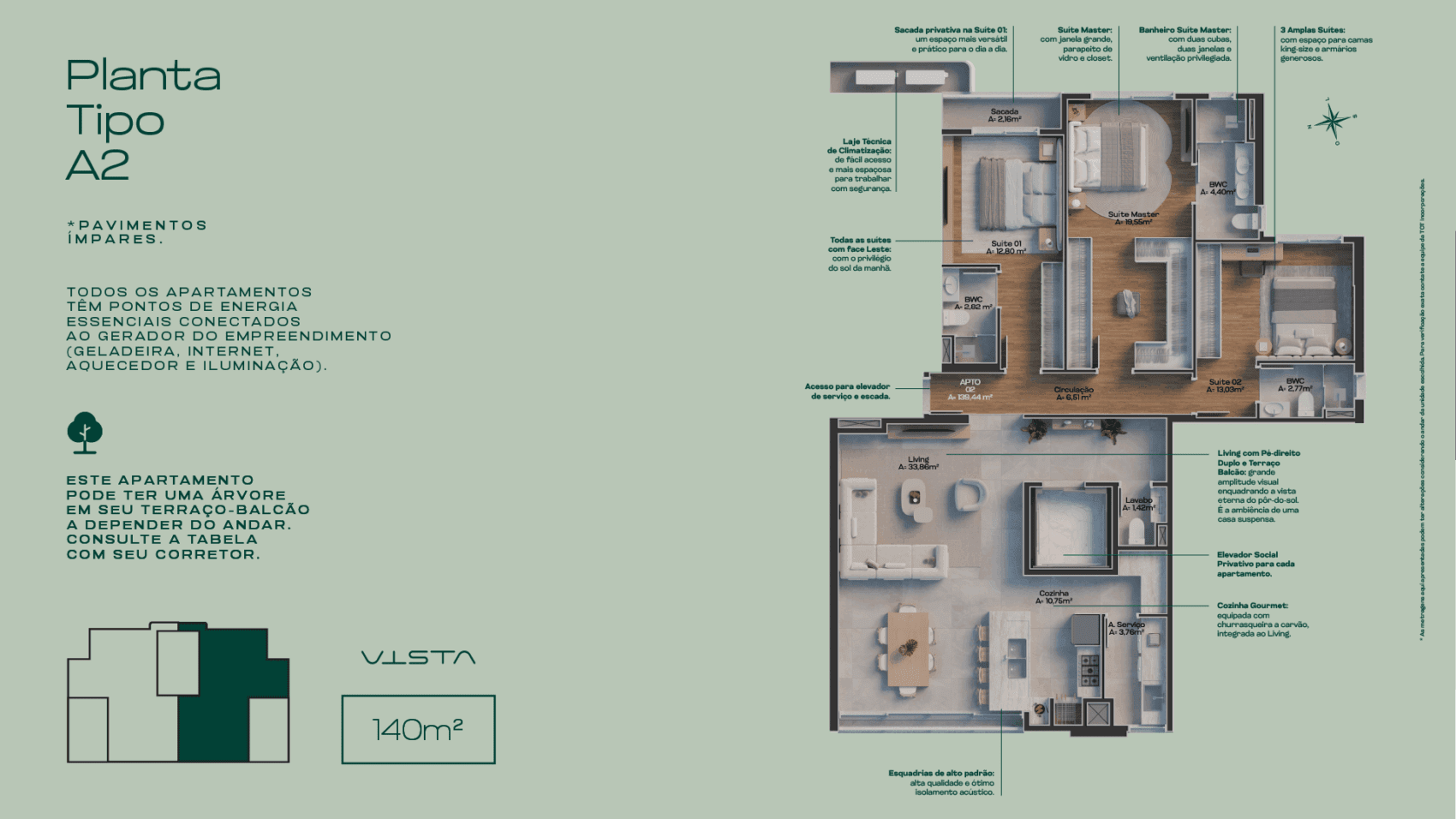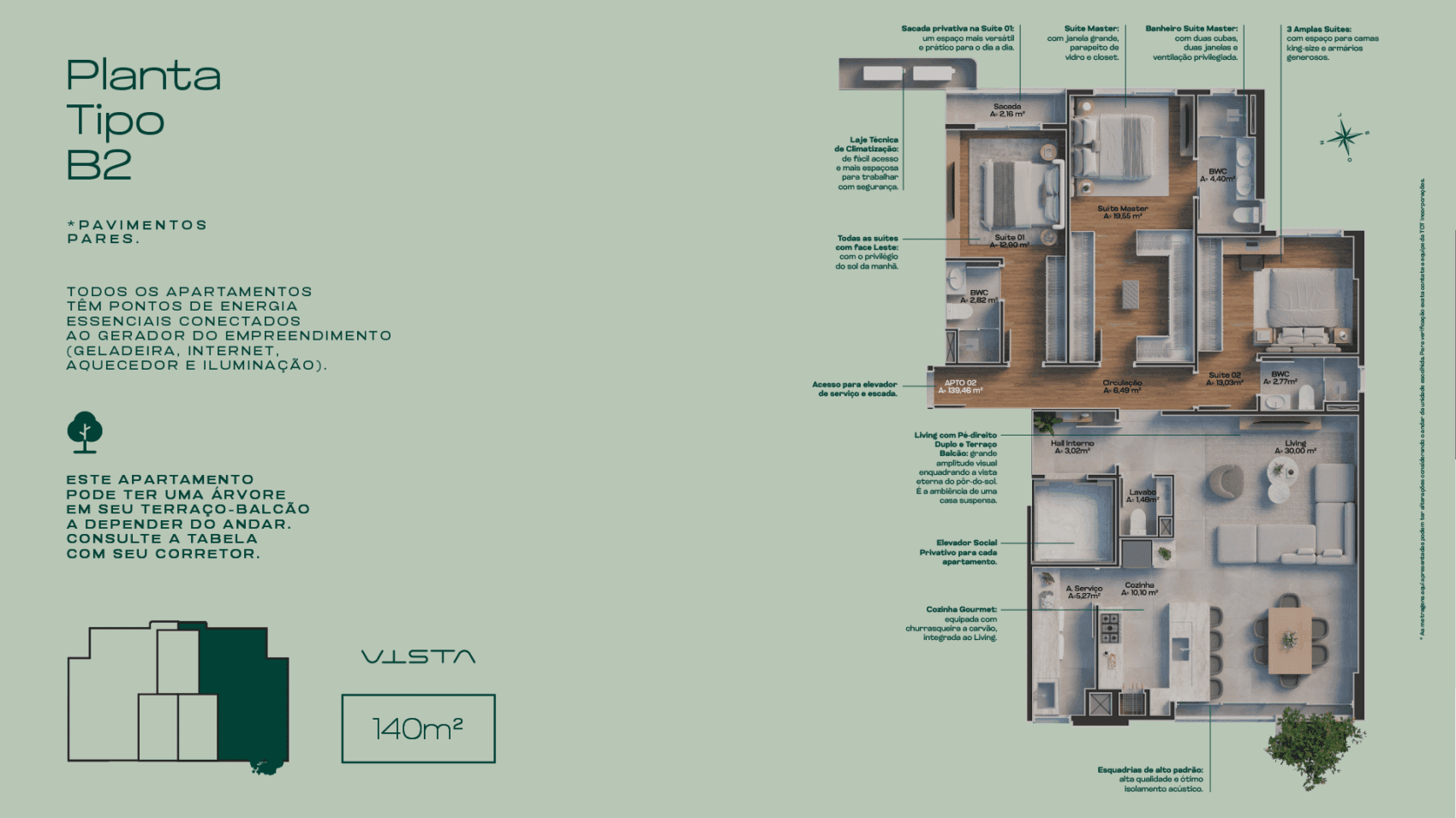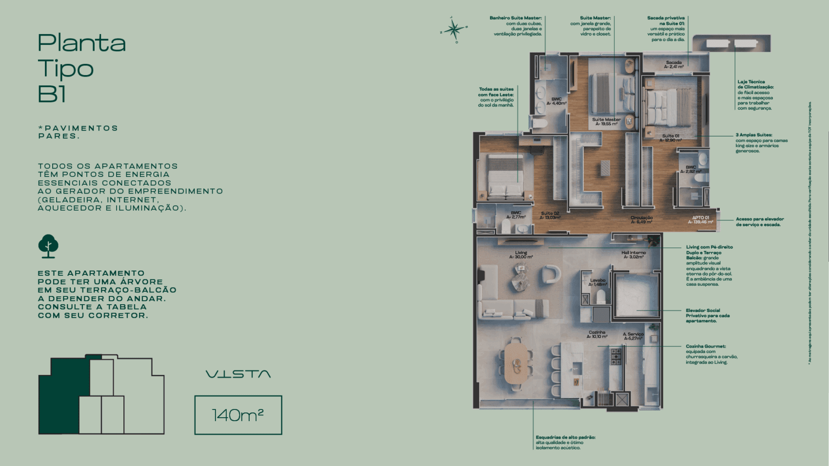 Área Privativa 140 m²