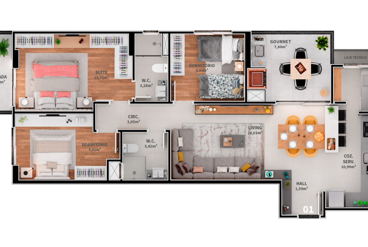 • Dormitórios 3