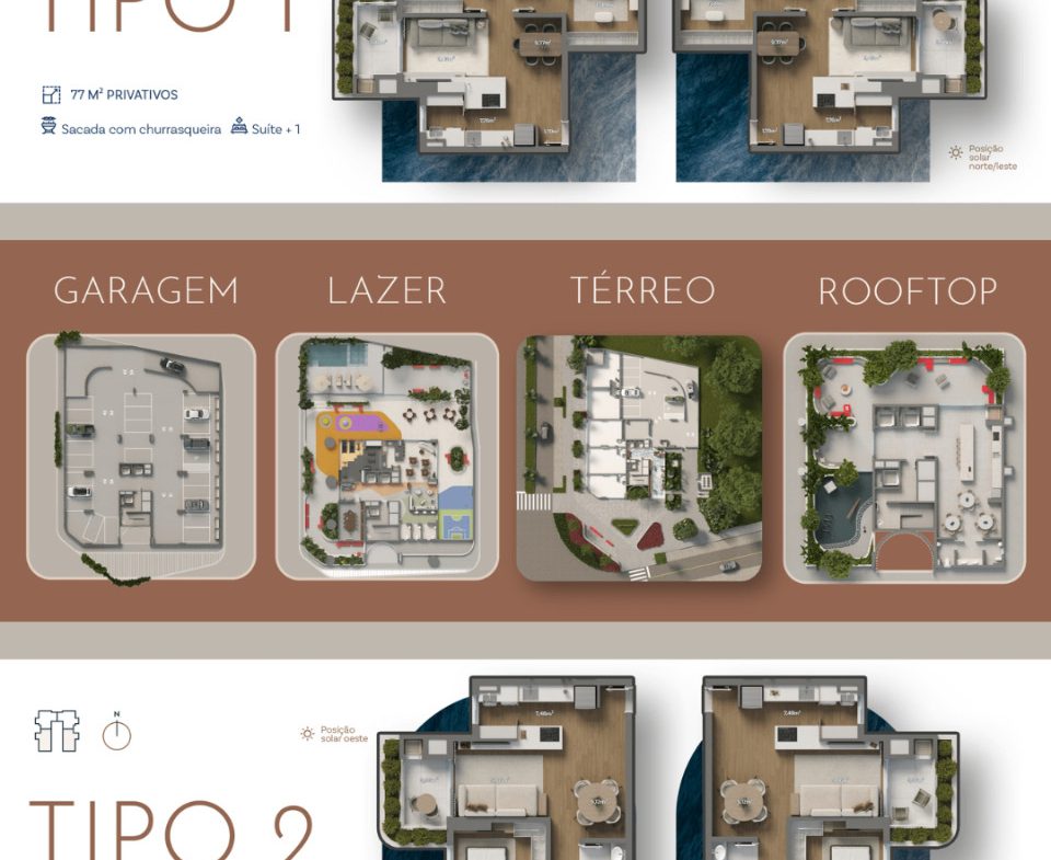 Apartamentos planejados para melhor luz natural e ventilação, melhor orientação solar e planta inteligente, assim como vagas de garagem maiores do padrão.