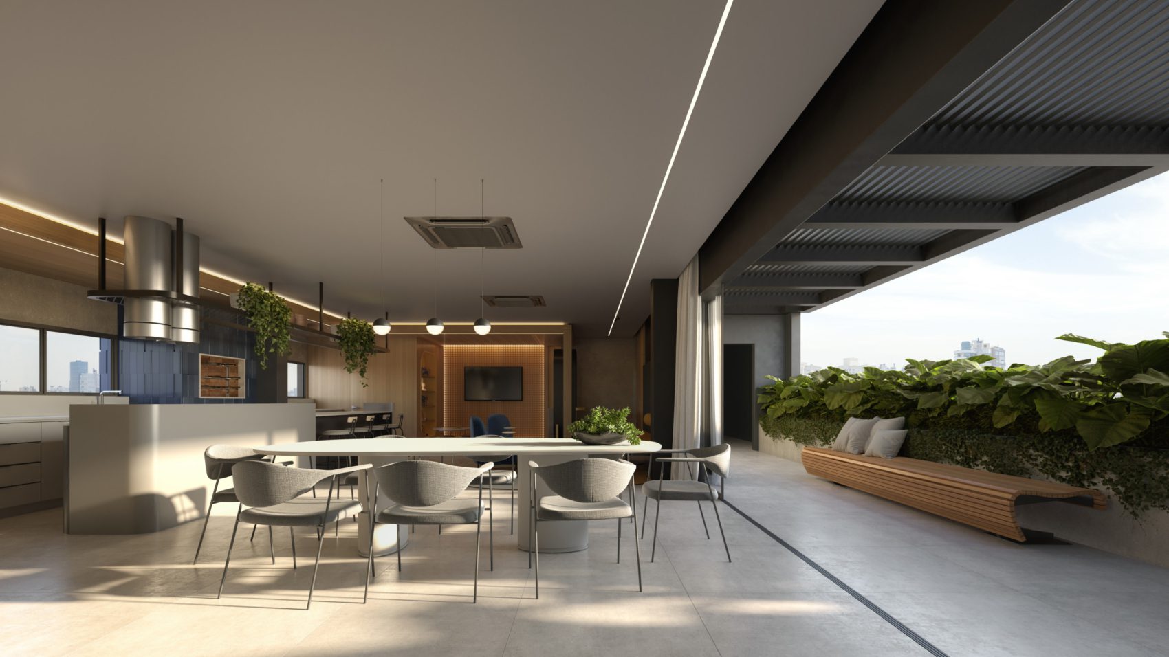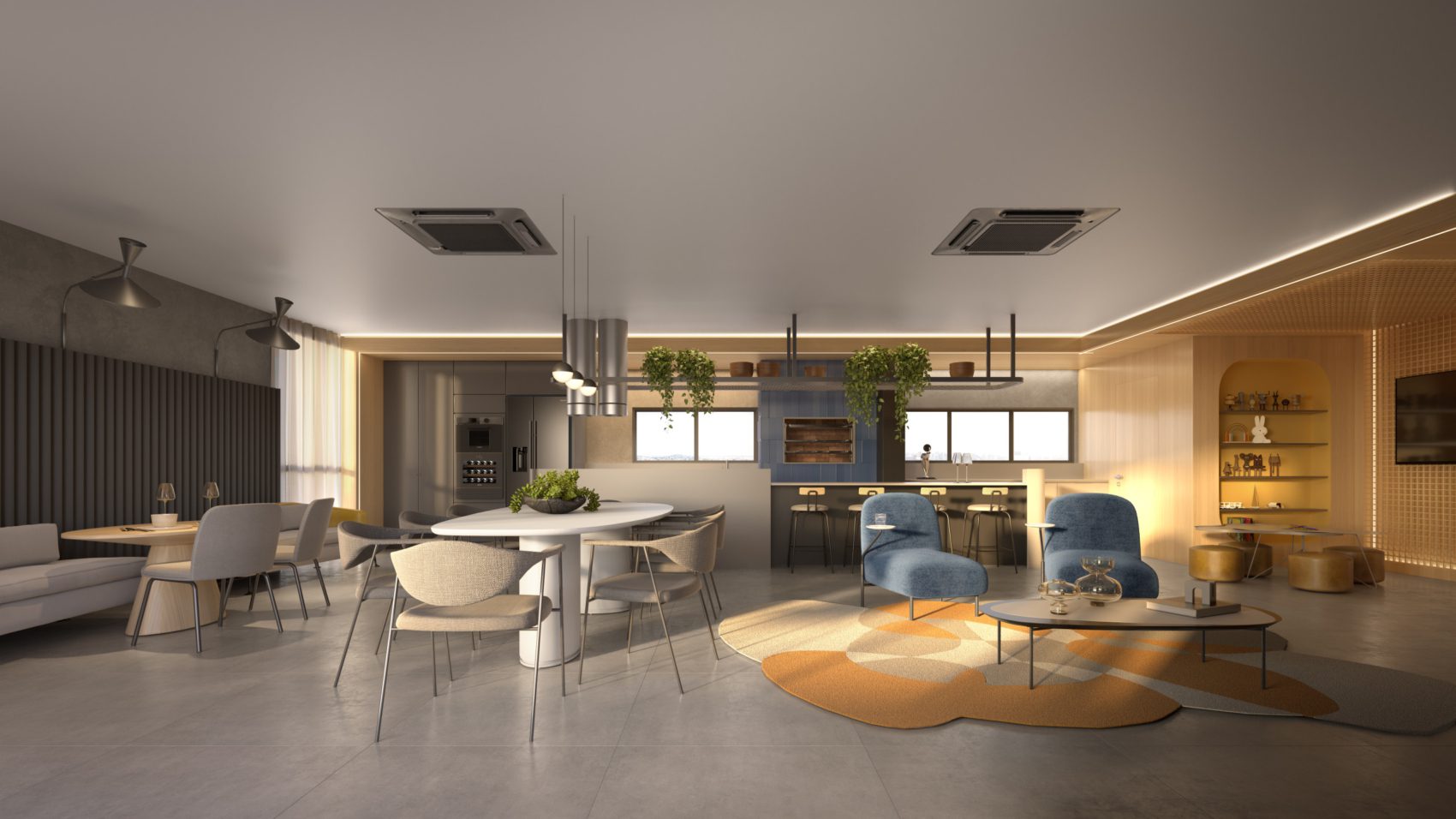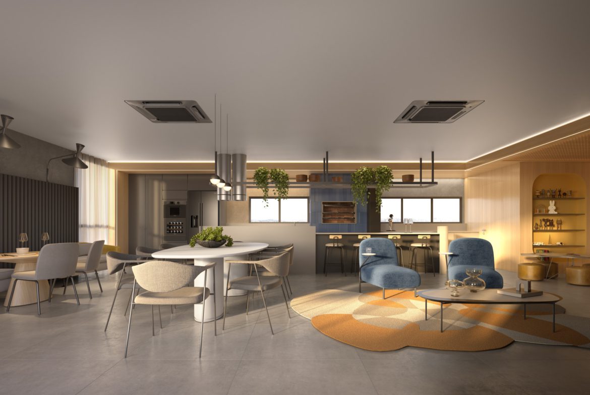 -Áreas comuns decoradas de alto bom gosto.