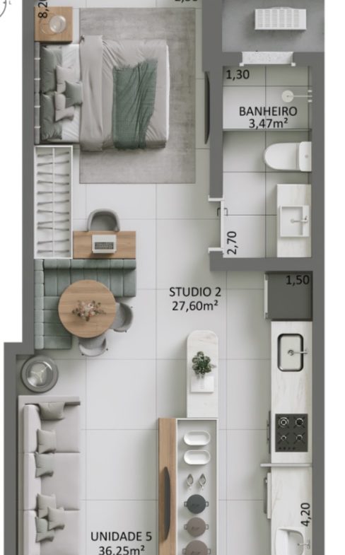 Área Privativa 38 m²