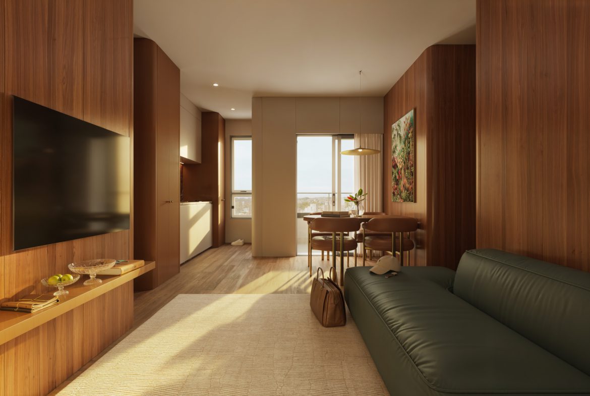 -Arquitetura e tecnologia de última geração com apartamentos inteligentes. Um quarto.