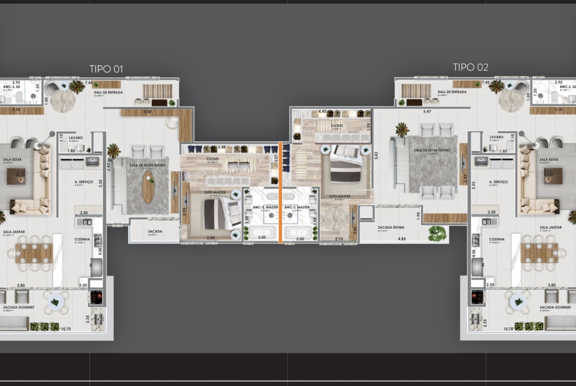Área privativa à partir de 157m quadrados ou 177m quadrados